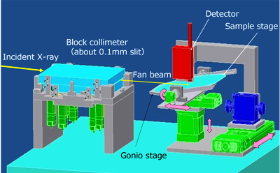 In our measurement device, which uses the MIRRORCLE-CV series synchrotron light source, characteristic X-rays can be produced by interchanging the target.